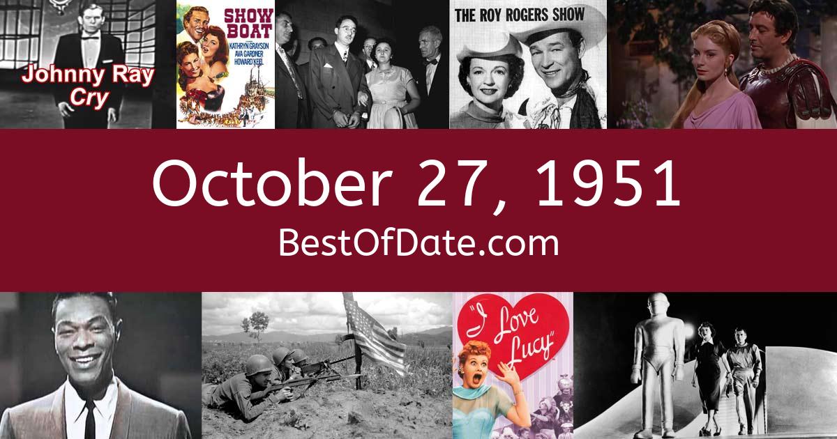 News stories, pop culture trends, and other events that happened around October 27, 1951.