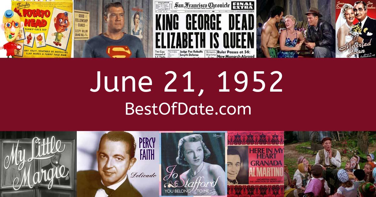 News stories, pop culture trends, and other events that happened around June 21, 1952.