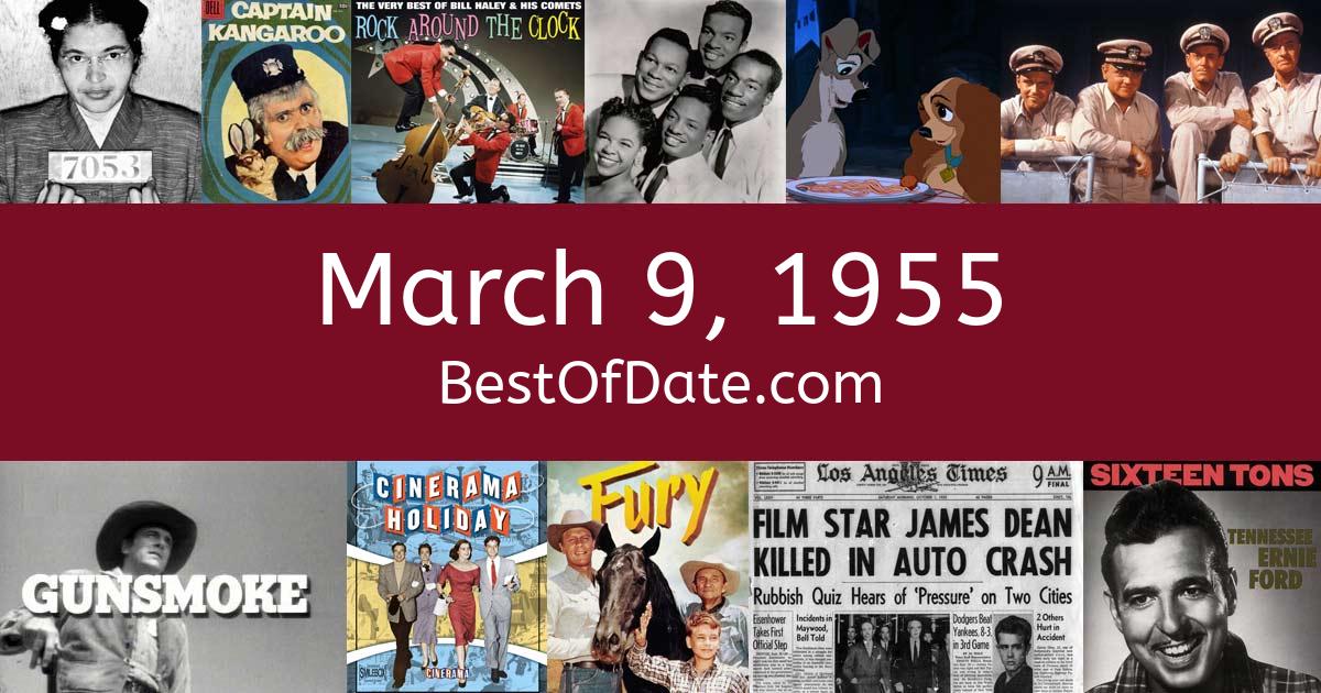 News stories, pop culture trends, and other events that happened around March 9, 1955.