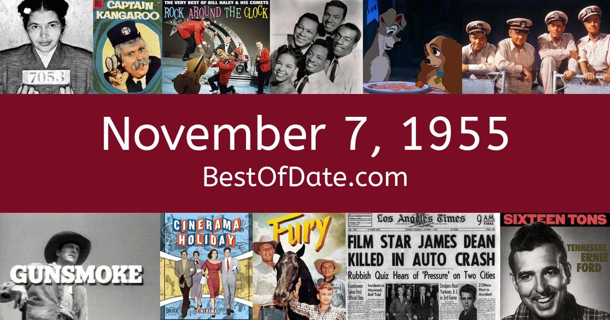 News stories, pop culture trends, and other events that happened around November 7, 1955.