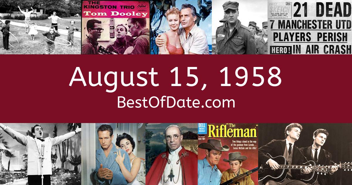 News stories, pop culture trends, and other events that happened around August 15, 1958.