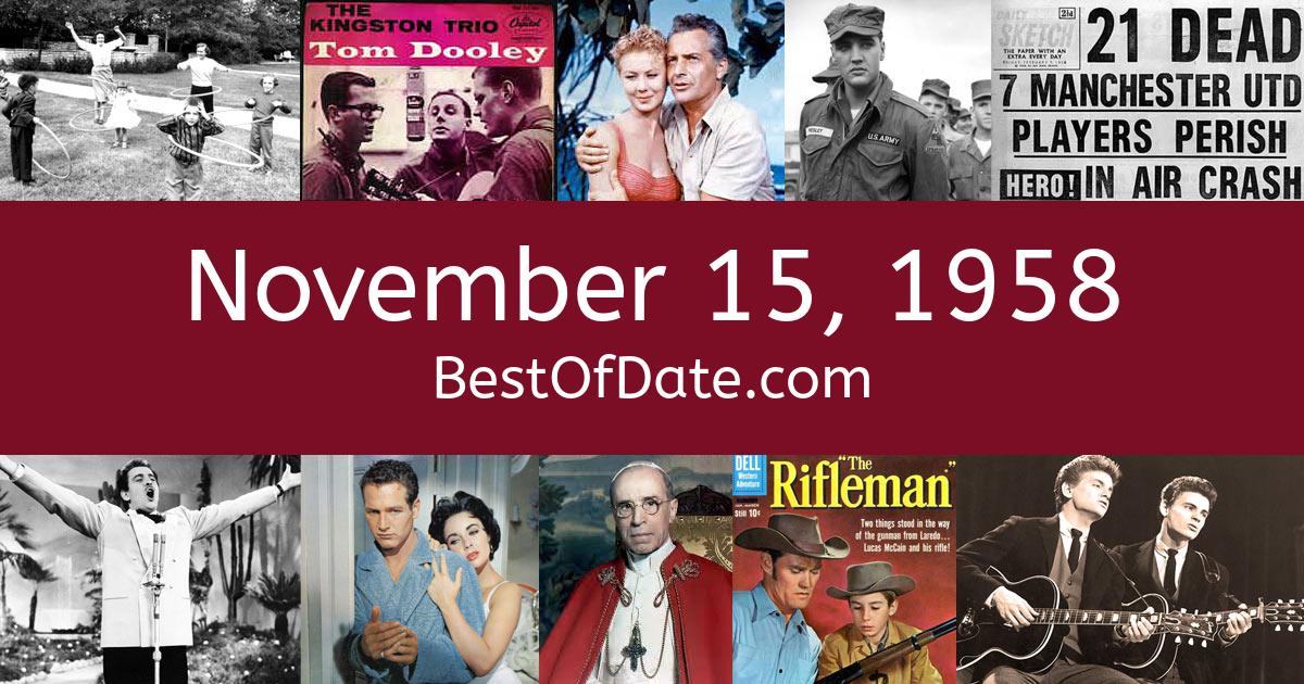 News stories, pop culture trends, and other events that happened around November 15, 1958.