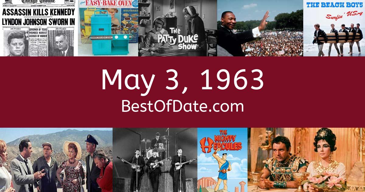 News stories, pop culture trends, and other events that happened around May 3, 1963.