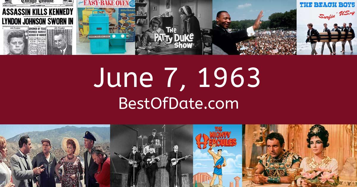 News stories, pop culture trends, and other events that happened around June 7, 1963.
