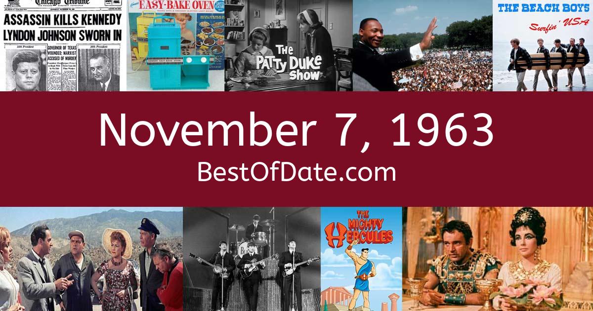 News stories, pop culture trends, and other events that happened around November 7, 1963.