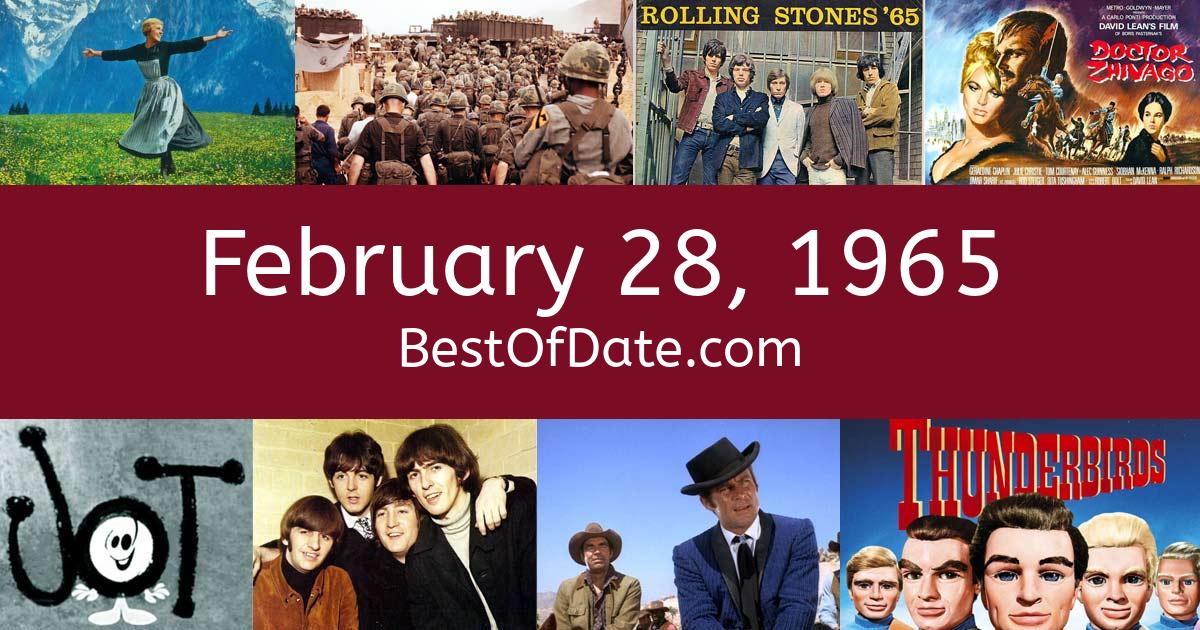 February 28, 1965, was a Sunday. It was 60 years, 9 months, and 8 days ago. The zodiac star sign for this date is Pisces.