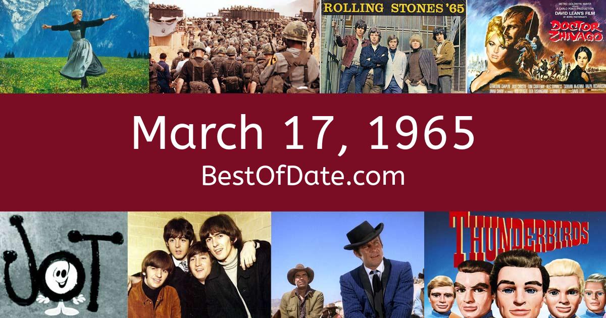 News stories, pop culture trends, and other events that happened around March 17, 1965.