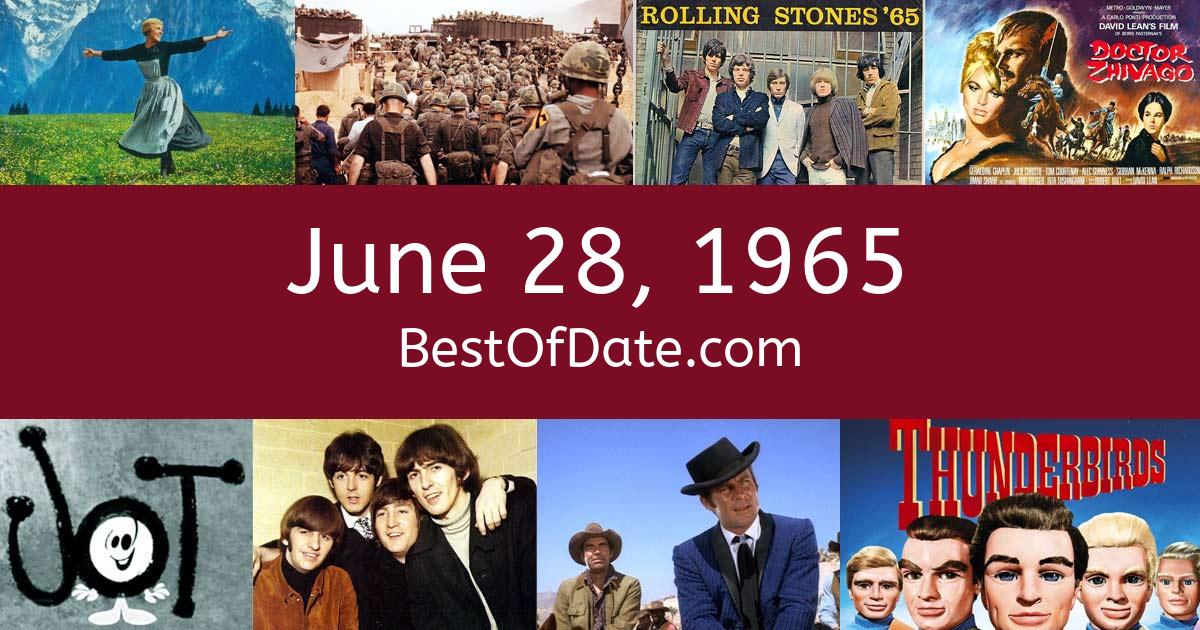 June 28, 1965, was a Monday. It was 60 years, 5 months, and 10 days ago. The zodiac star sign for this date is Cancer.