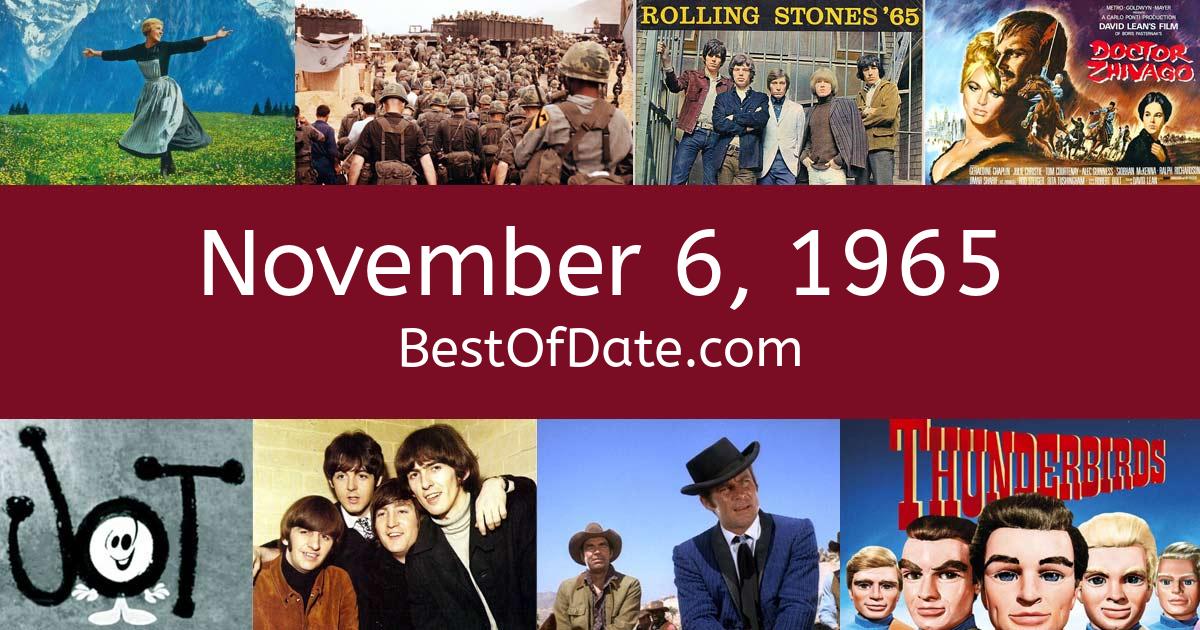 November 6, 1965, was a Saturday. It was 60 years, 1 month, and 2 days ago. The zodiac star sign for this date is Scorpio.