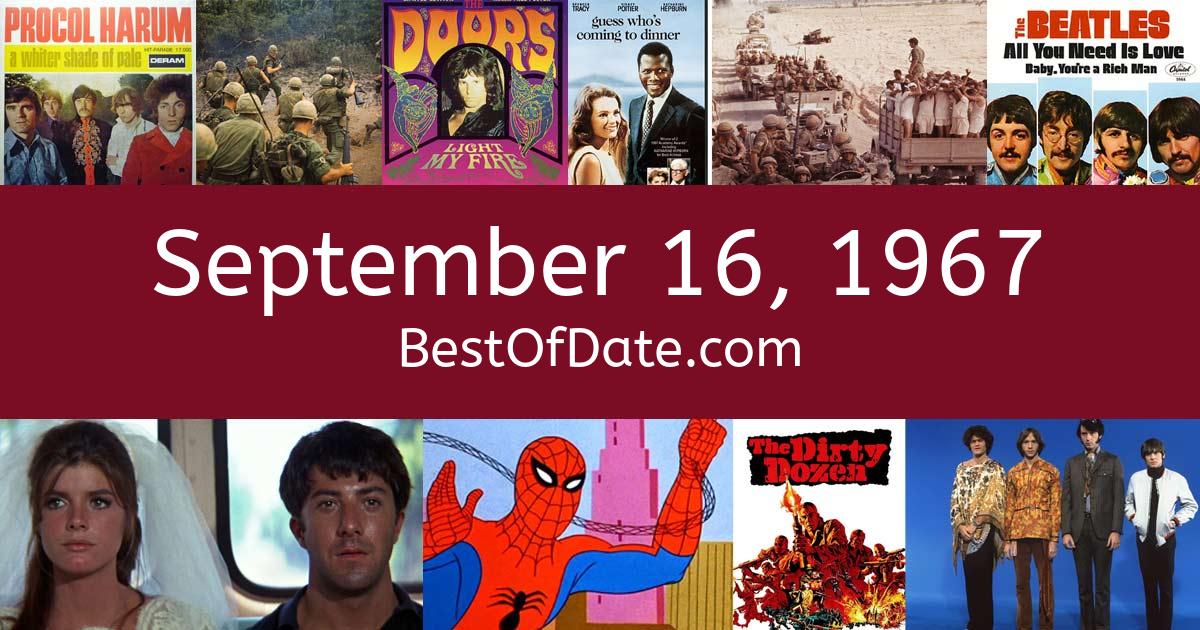 September 16, 1967, was a Saturday. It was 58 years, 2 months, and 22 days ago. The zodiac star sign for this date is Virgo.