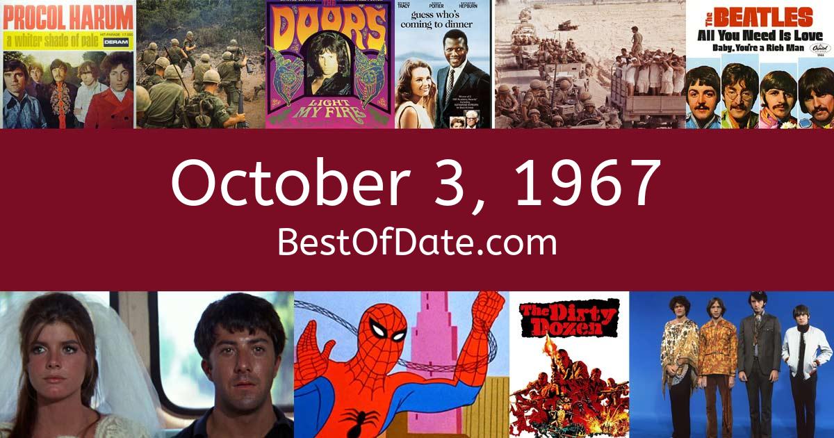 News stories, pop culture trends, and other events that happened around October 3, 1967.