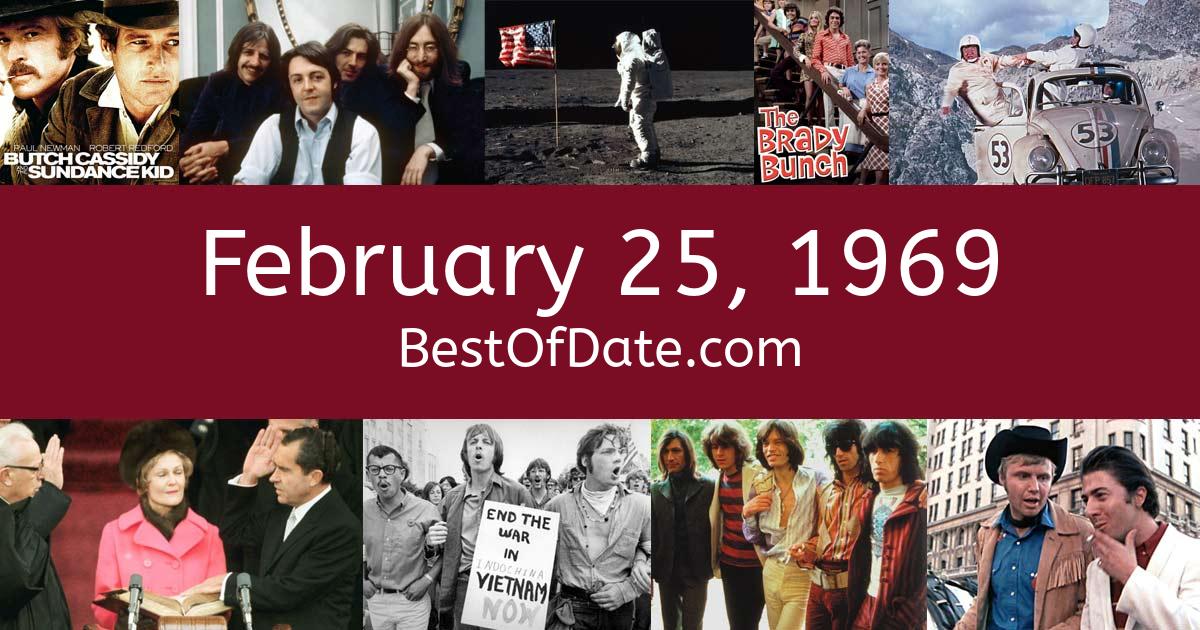 News stories, pop culture trends, and other events that happened around February 25, 1969.