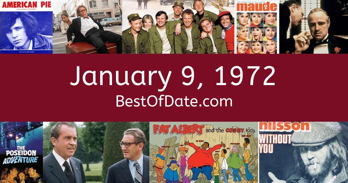 News stories, pop culture trends, and other events that happened around January 9, 1972.
