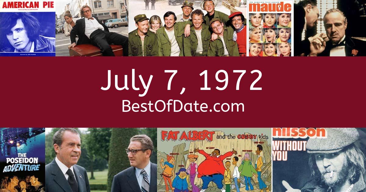 News stories, pop culture trends, and other events that happened around July 7, 1972.