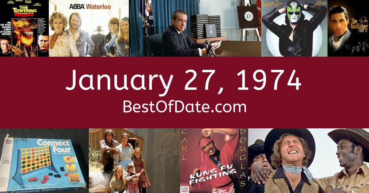 News stories, pop culture trends, and other events that happened around January 27, 1974.
