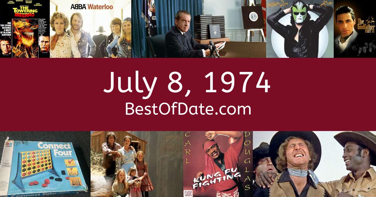 July 8, 1974, was a Monday. It was 51 years and 5 months ago. The zodiac star sign for this date is Cancer.