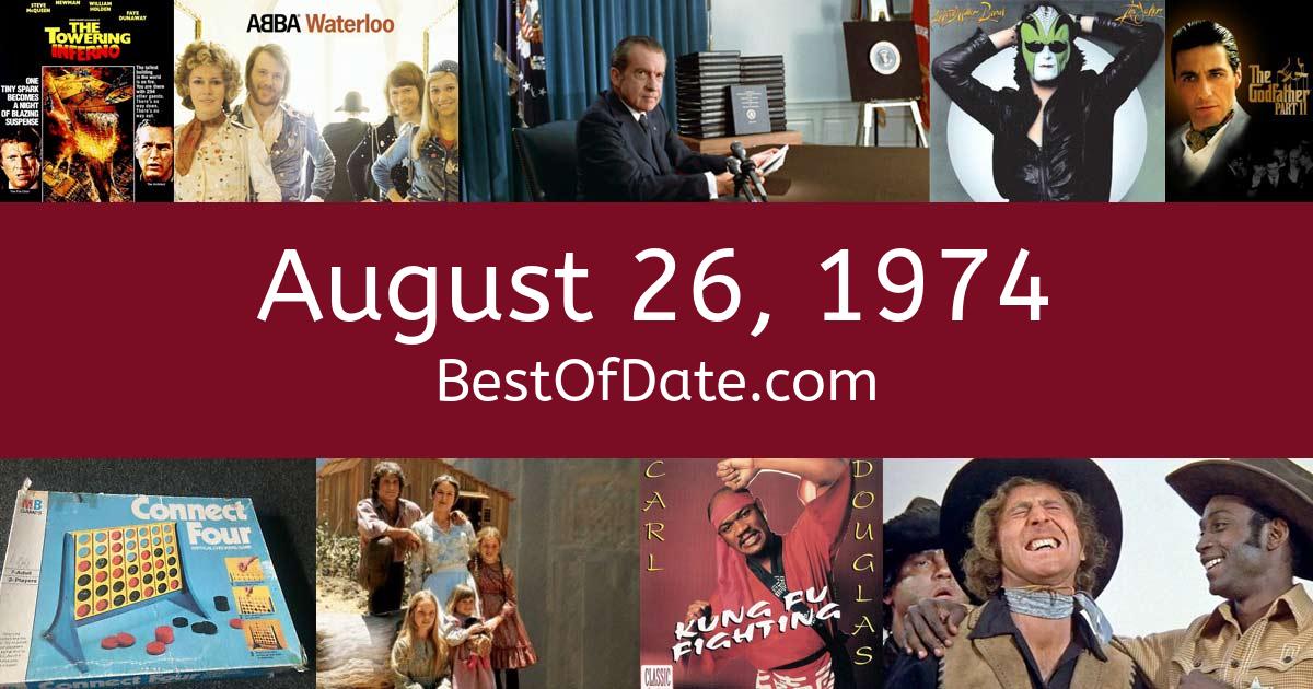 August 26, 1974, was a Monday. It was 51 years, 3 months, and 13 days ago. The zodiac star sign for this date is Virgo.