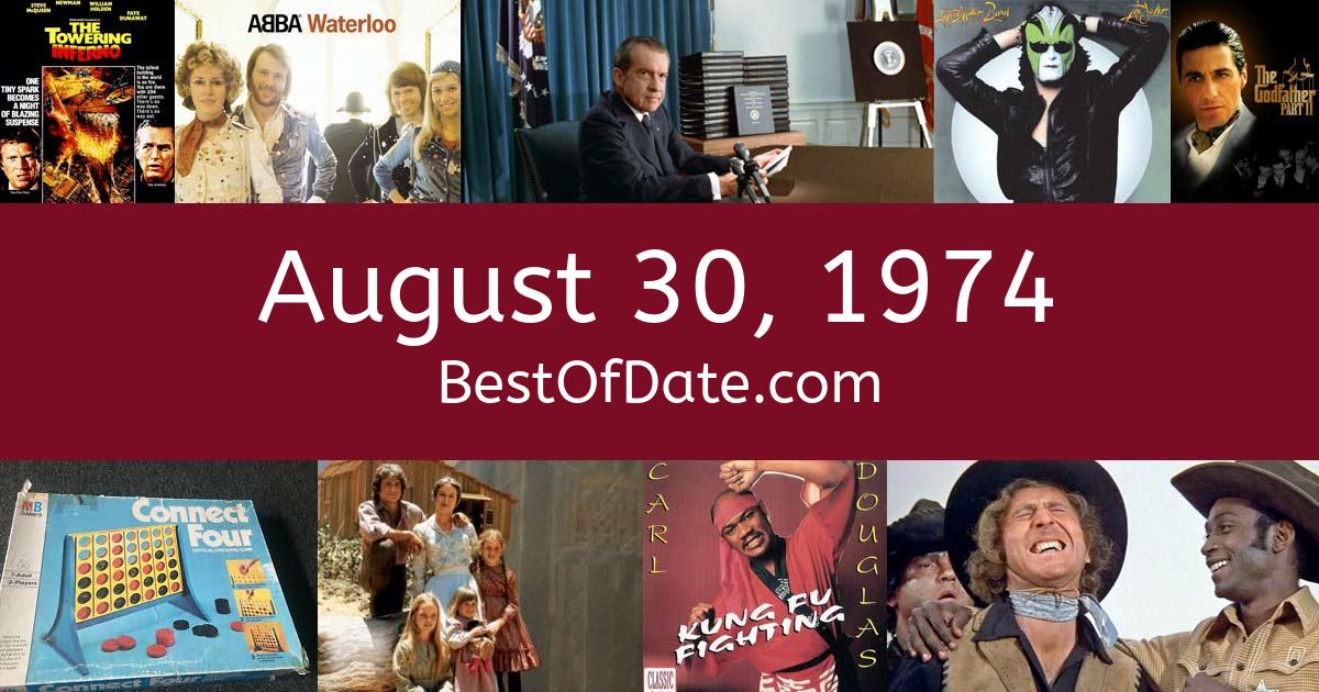 August 30, 1974, was a Friday. It was 51 years, 3 months, and 9 days ago. The zodiac star sign for this date is Virgo.