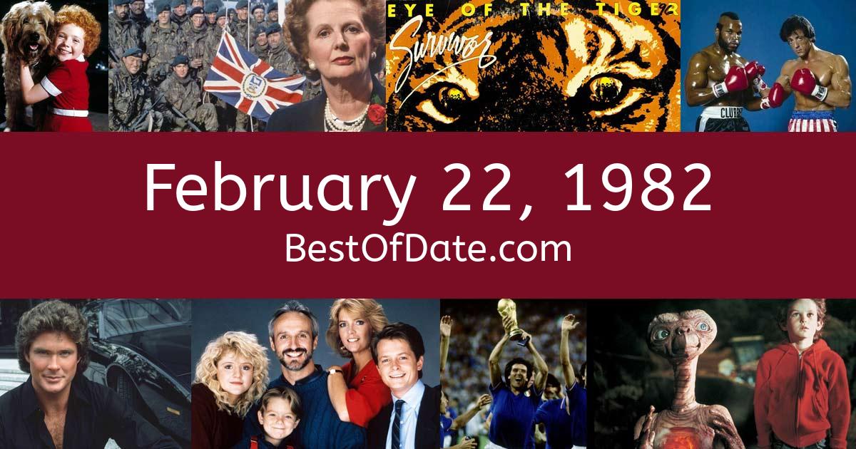 February 22, 1982, was a Monday. It was 43 years, 9 months, and 14 days ago. The zodiac star sign for this date is Pisces.