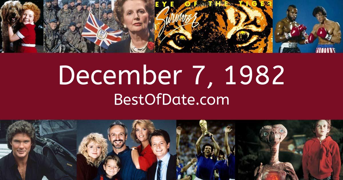 December 7, 1982, was a Tuesday. It was 43 years and 1 day ago. The zodiac star sign for this date is Sagittarius.