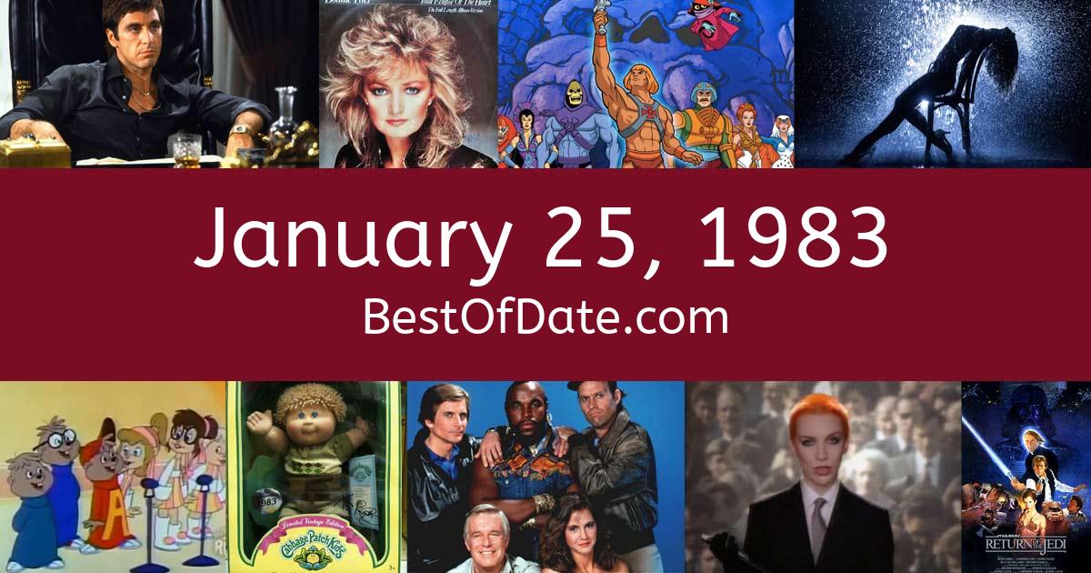 News stories, pop culture trends, and other events that happened around January 25, 1983.