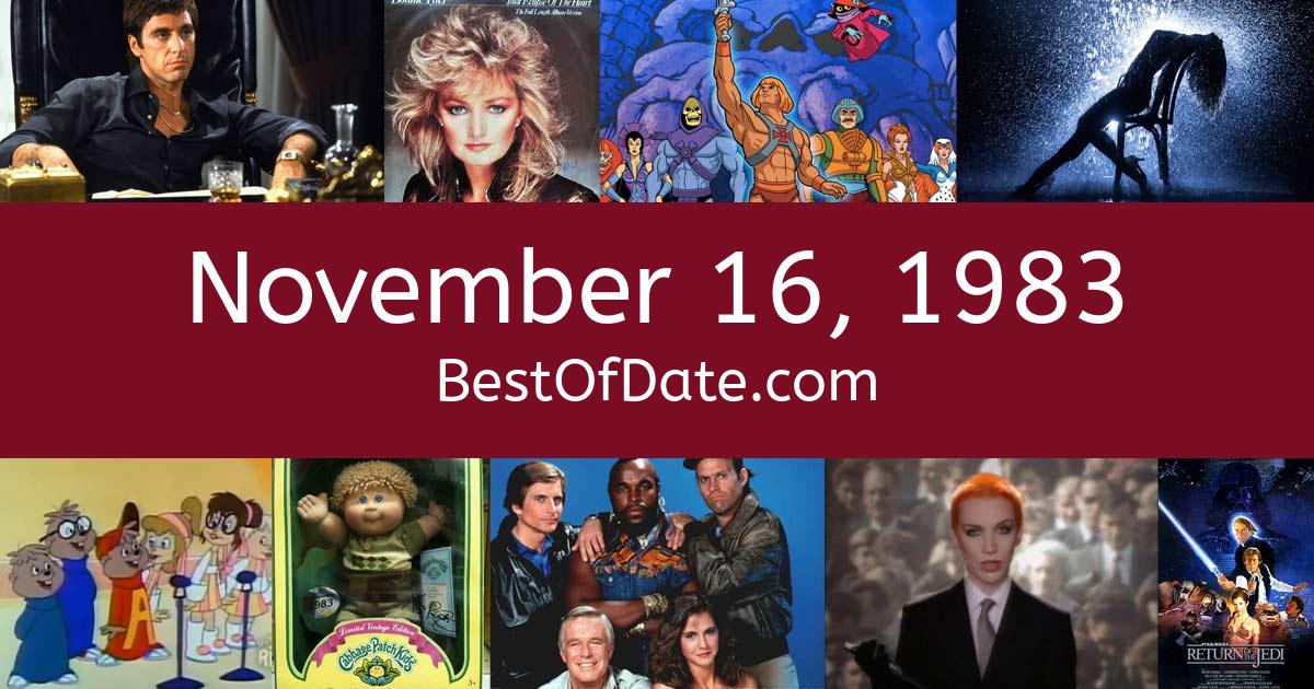 November 16, 1983, was a Wednesday. It was 42 years and 22 days ago. The zodiac star sign for this date is Scorpio.