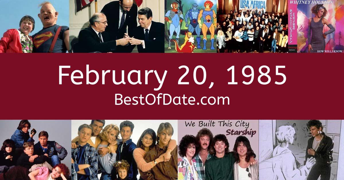 It is Wednesday, February 20, 1985. Babies who are born today will have the star sign Pisces. It is "Hump Day", so many are beginning to think about the weekend ahead.
