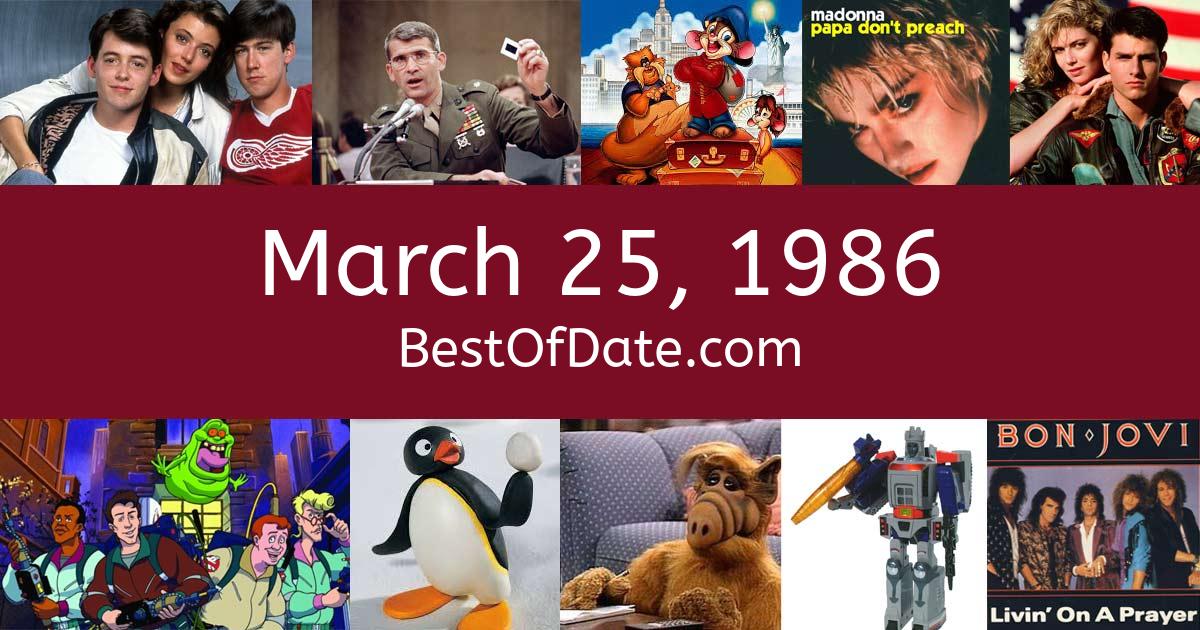 News stories, pop culture trends, and other events that happened around March 25, 1986.