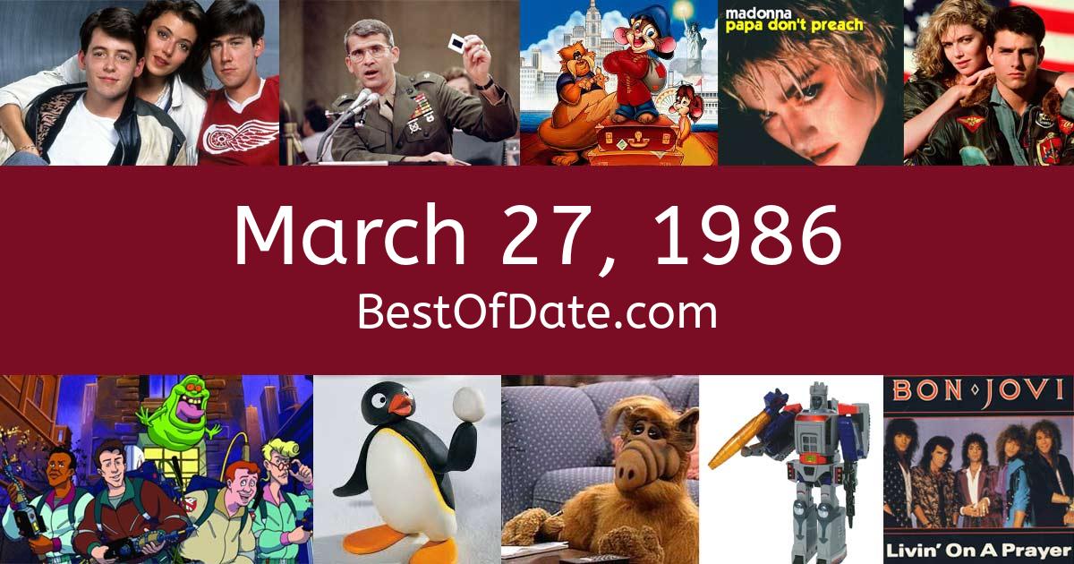 News stories, pop culture trends, and other events that happened around March 27, 1986.