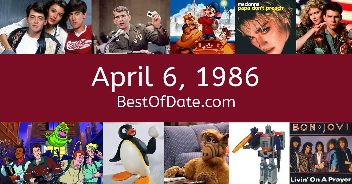 April 6, 1986, was a Sunday. It was 39 years, 8 months, and 2 days ago. The zodiac star sign for this date is Aries.