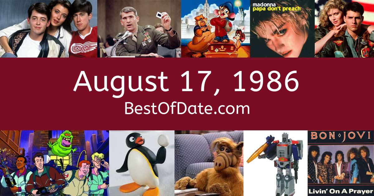 News stories, pop culture trends, and other events that happened around August 17, 1986.