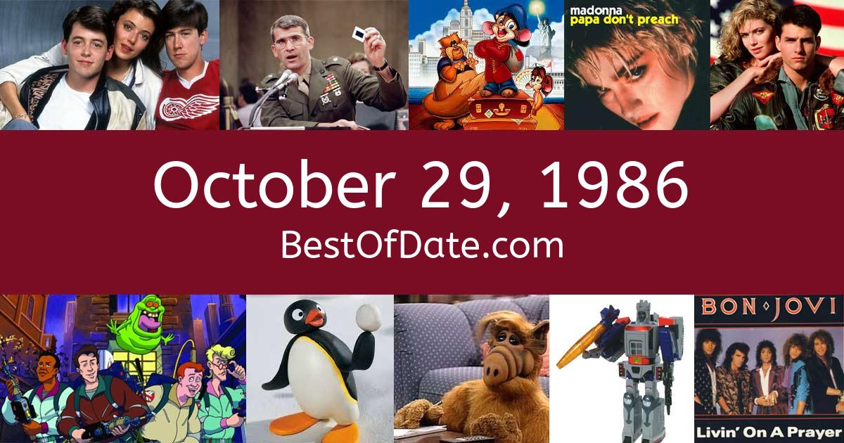 News stories, pop culture trends, and other events that happened around October 29, 1986.