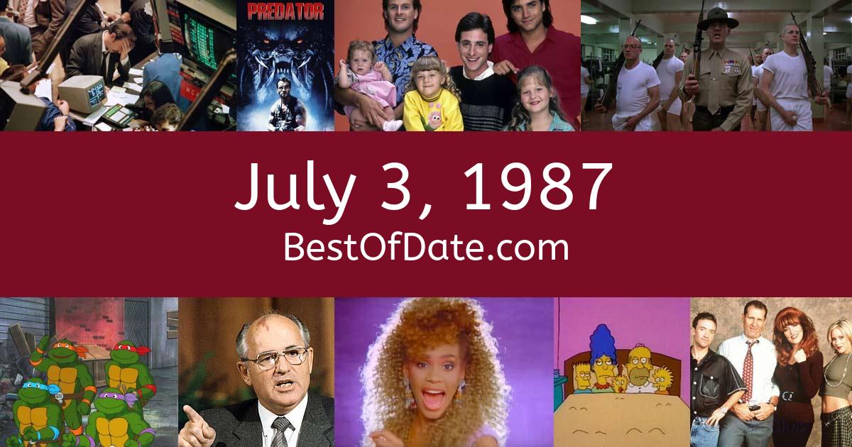 News stories, pop culture trends, and other events that happened around July 3, 1987.