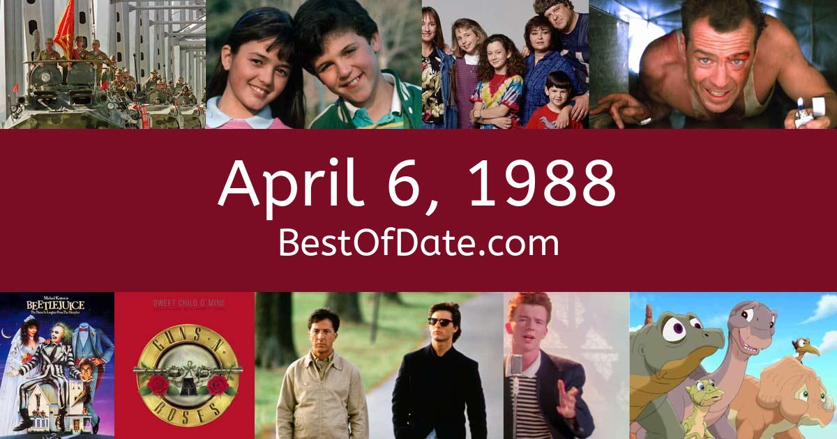 April 6, 1988, was a Wednesday. It was 37 years, 8 months, and 2 days ago. The zodiac star sign for this date is Aries.