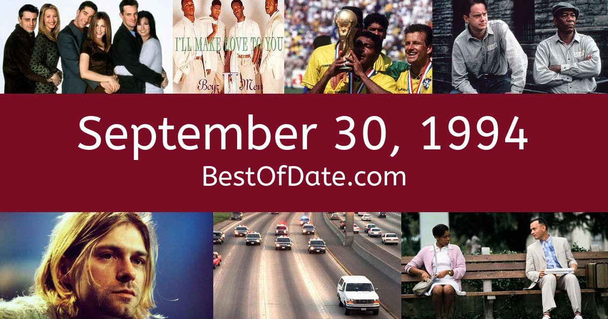 September 30, 1994, was a Friday. It was 31 years, 2 months, and 8 days ago. The zodiac star sign for this date is Libra.