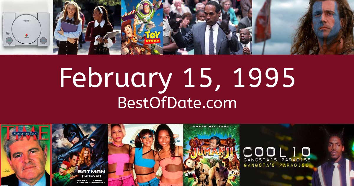 News stories, pop culture trends, and other events that happened around February 15, 1995.