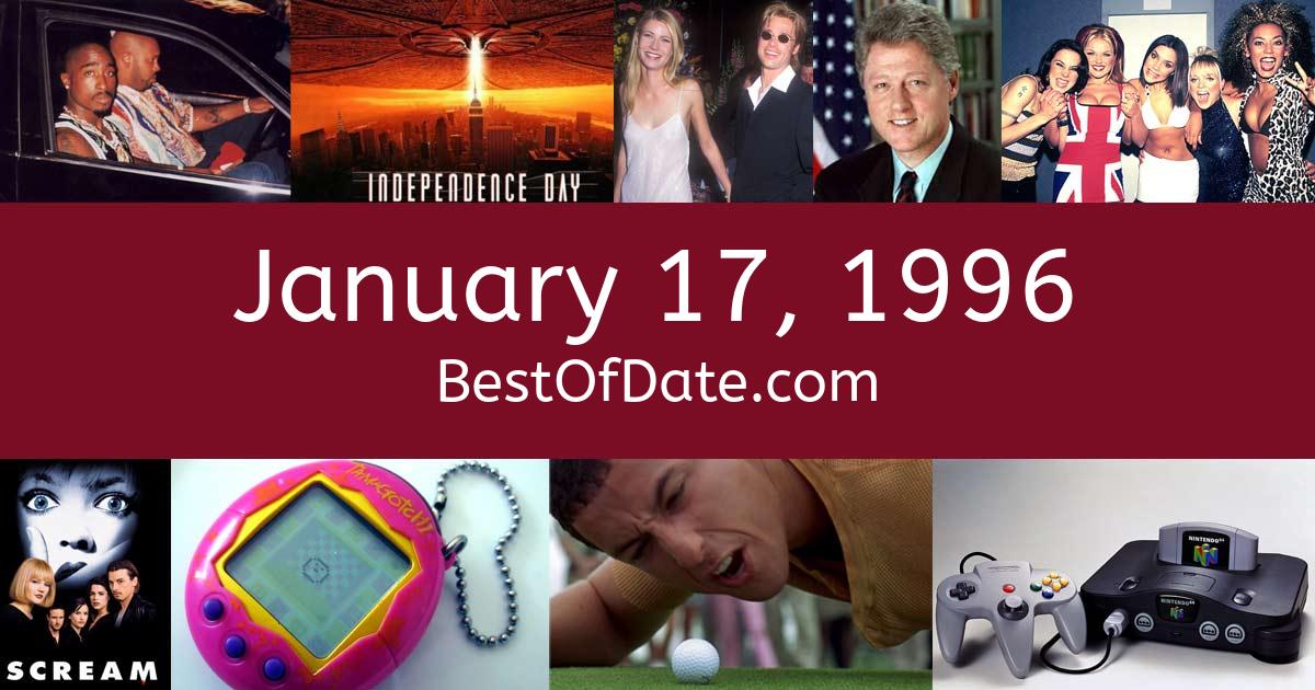 News stories, pop culture trends, and other events that happened around January 17, 1996.