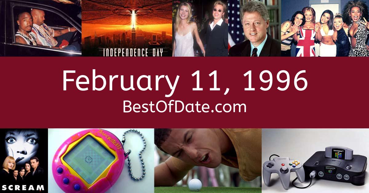 News stories, pop culture trends, and other events that happened around February 11, 1996.