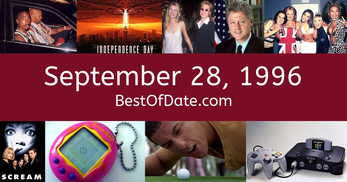 September 28, 1996, was a Saturday. It was 29 years, 2 months, and 10 days ago. The zodiac star sign for this date is Libra.