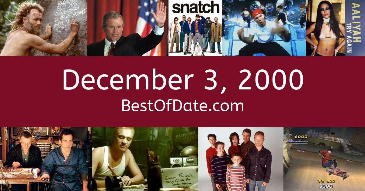 News stories, pop culture trends, and other events that happened around December 3, 2000.