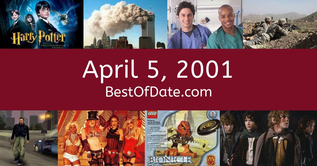 News stories, pop culture trends, and other events that happened around April 5, 2001.