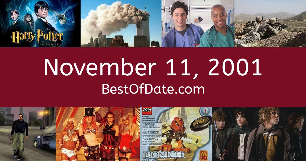 News stories, pop culture trends, and other events that happened around November 11, 2001.