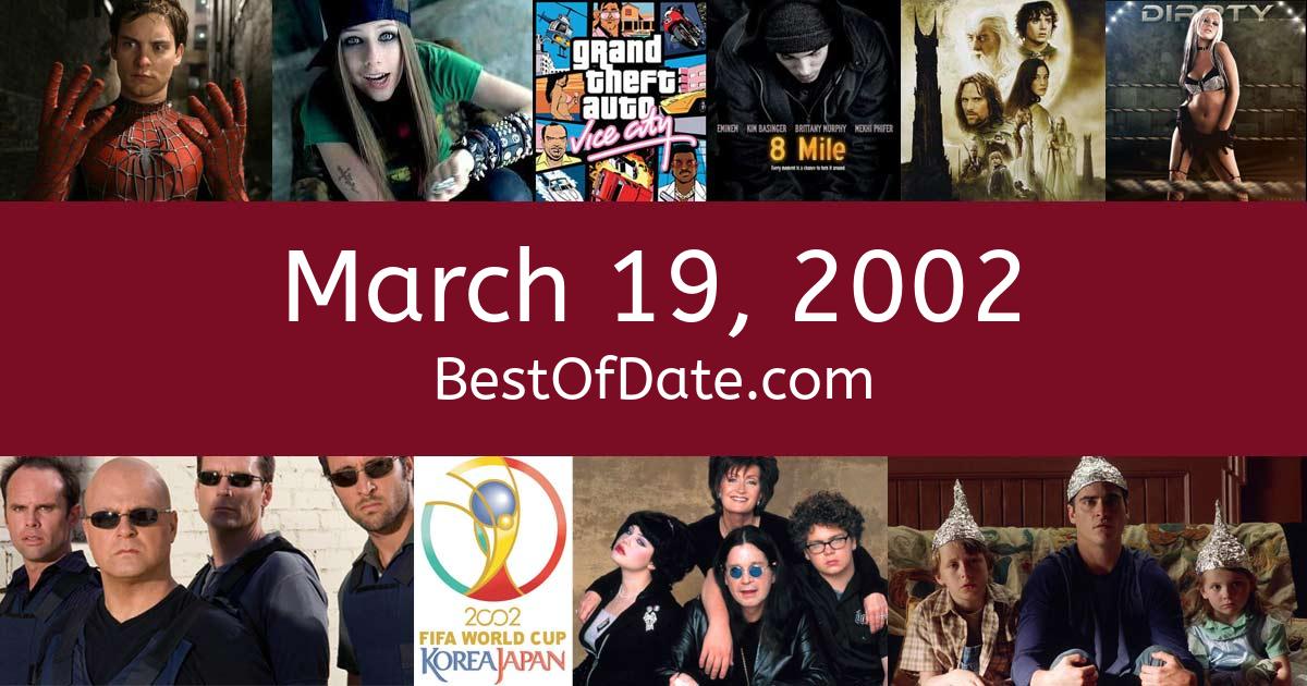 News stories, pop culture trends, and other events that happened around March 19, 2002.