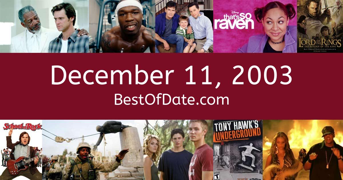 News stories, pop culture trends, and other events that happened around December 11, 2003.
