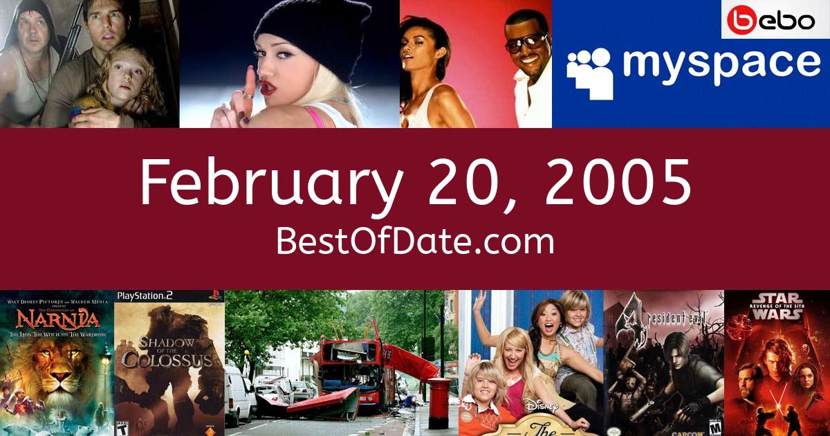 February 20, 2005, was a Sunday. It was 20 years, 9 months, and 16 days ago. The zodiac star sign for this date is Pisces.