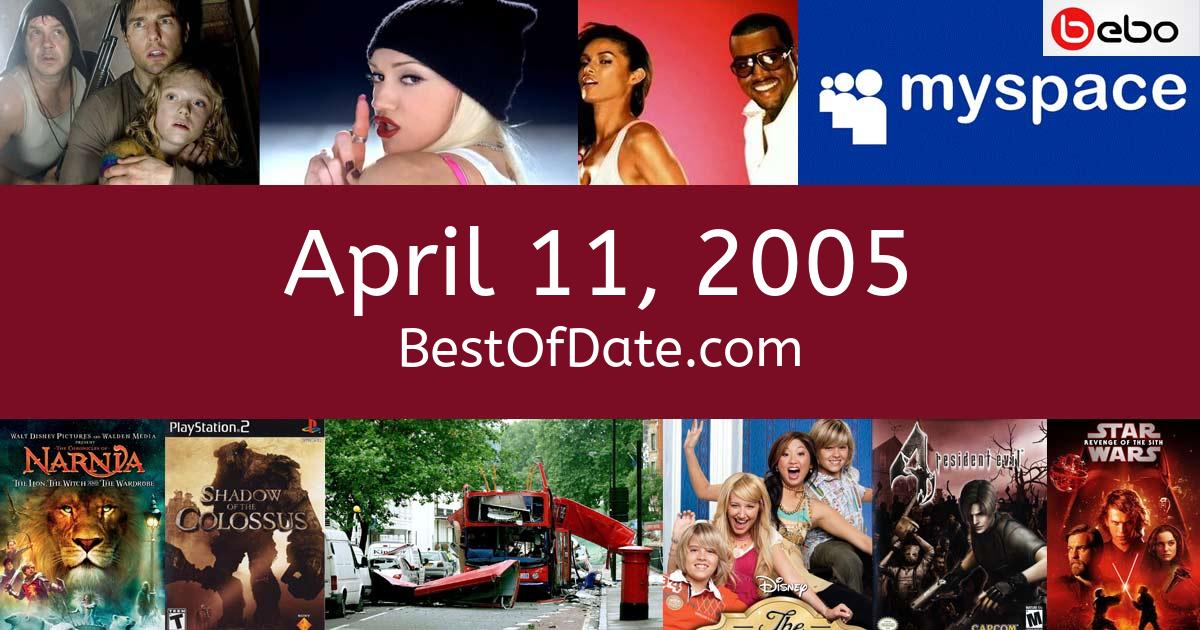 News stories, pop culture trends, and other events that happened around April 11, 2005.