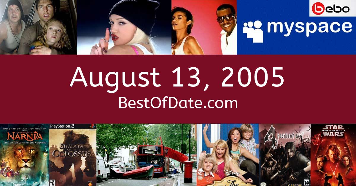 News stories, pop culture trends, and other events that happened around August 13, 2005.