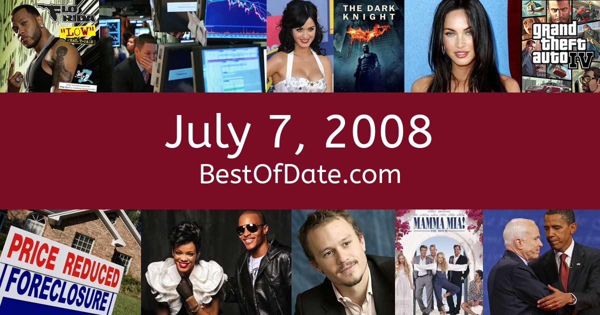 News stories, pop culture trends, and other events that happened around July 7, 2008.