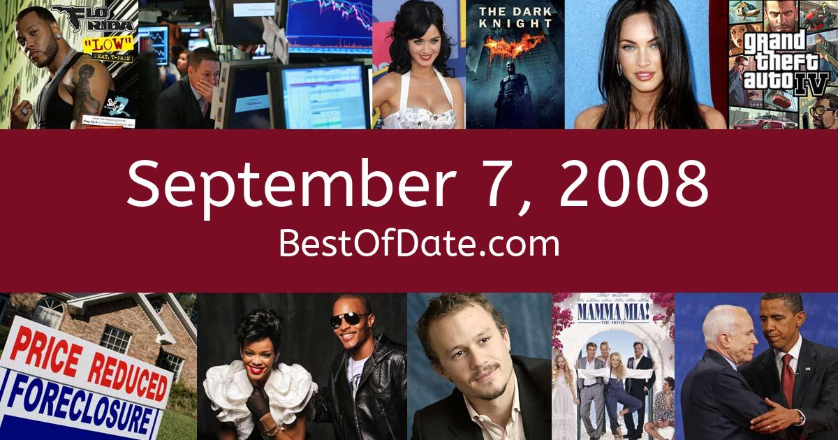 News stories, pop culture trends, and other events that happened around September 7, 2008.