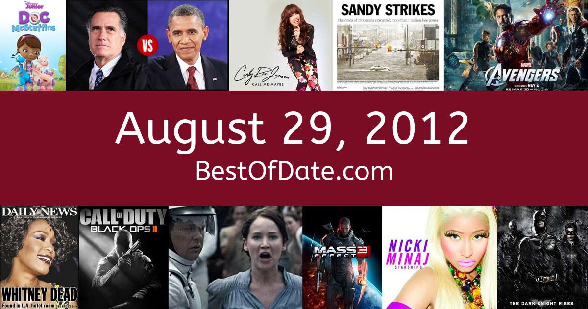News stories, pop culture trends, and other events that happened around August 29, 2012.